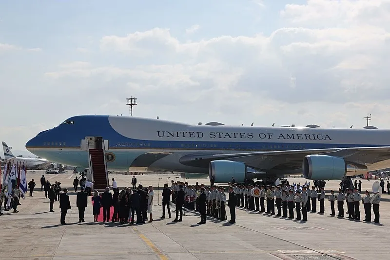 AIR FORCE ONE'DAN BİR MANZARA, Tel Aviv'deki ABD Büyükelçiliği şubesinin sahil cephesi üzerinde uçarken…