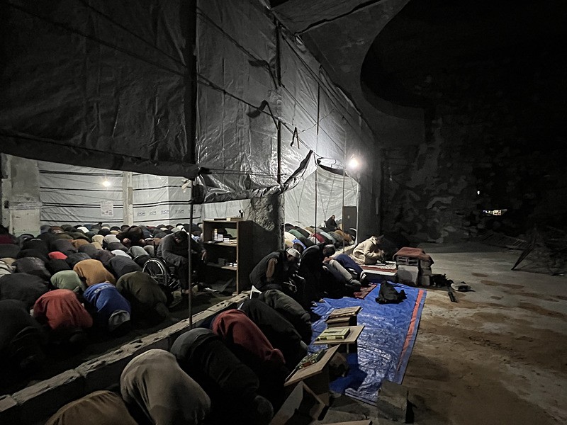 Gazze Şeridi'ndeki Müslümanlar, bu yıl teravih namazını bombalanan camilerin enkazlarında veya çadır kamplarındaki çadır mescitlerde kıldı.