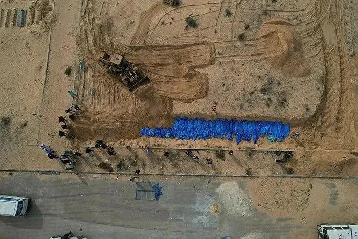 İsrail ordusu, Gazze'de öldürdüğü Filistinliler'den 111'inin cenazesini teslim etti. Han Yunus'a getirilen aralarında çocukların ve bebeklerin de bulunduğu cansız bedenler, toplu mezara defnedildi.