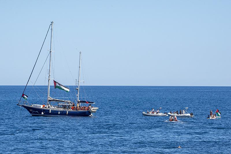 Dün yola çıkan yelkenli, ellerinde Filistin bayrağı olan çok sayıda kişi tarafından uğurlandı.