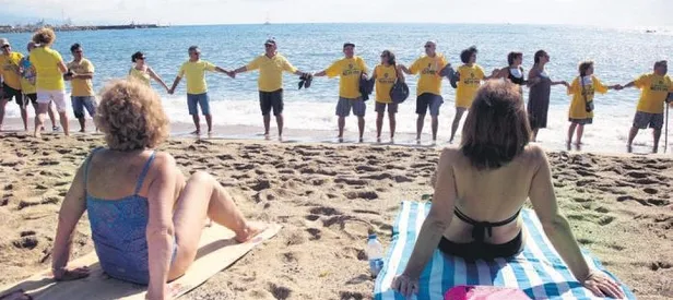 İspanya'nın Barselona şehrinde kriz var. Turistlerden bunalan yerli halk, eylem yaptı. Plajlara inip pankart açan protestocular, denizin önünde etten duvar ördü. Aşırı solcu CUP partisinin gençlik kolu 'Arran' konuyla ilgili yaptığı açıklamada, "Turistlerden dolayı kentimizin zarar görmesi ve işçilerin otelciler tarafından sömürülmesine kesinlikle karşıyız. Şiddette başvurmadan eylem hakkımızı kullanmaya devam edeceğiz" dedi. Öte yandan Barselona El Prat Havaalanı'nda çalışma koşullarının iyileştirilmesini isteyen işçilerle hükümet arasındaki anlaşmazlık sürüyor. Havaalanı güvenliğinden ve kontrollerden sorumlu işçiler maaşları az olduğu gerekçesiyle gerevde. İşçiler bugün, Katalan Hükümeti'nin grevin sonlandırılması için sunduğu teklifi oylayacak.