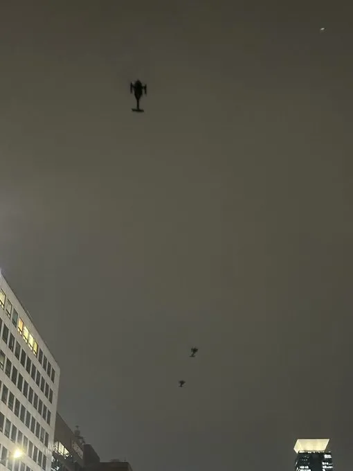 Güney Kore ordusuna ait helikopterler, parlamento binasının çevresinde devriye uçuşu gerçekleştiriyor.