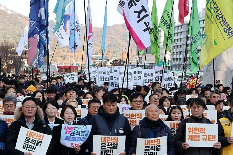 GÜNEY KORE HALKINDAN SIKIYÖNETİM KARARINA TEPKİ