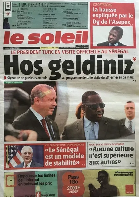 Gazetenin haberinde, "Dakar, 28 Şubat Çarşamba günü uluslararası diplomasi satrancında verimli hamleler yapan güçlü Türk lider Recep Tayyip Erdoğan'ı karşılamaya hazırlanıyor." ifadeleri kullanıldı.