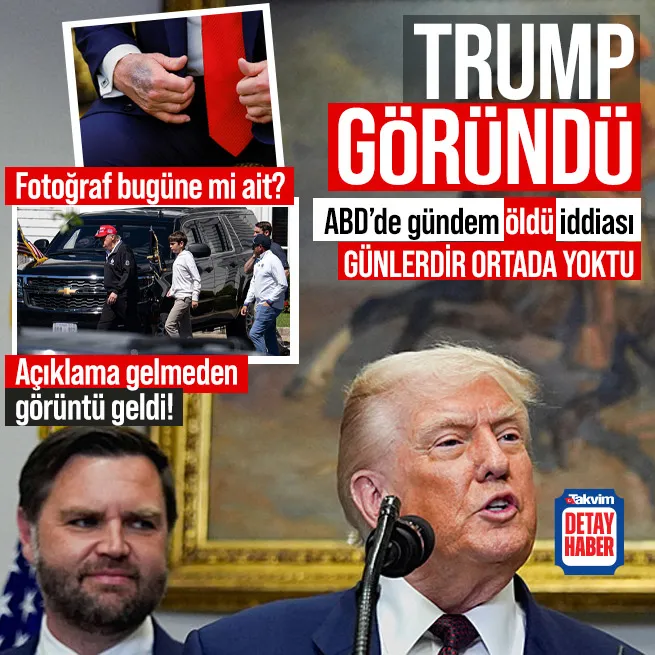 Trump geçtiğimiz hafta salı günü yapılan Kabine toplantısının ardından kamuoyuna çıkmaması ile öldüğüne yönelik iddialar patlak vermişti. ABD Başkan Yardımcısı JD Vance'in halefiyet açıklaması iddiaları alevlendirirken Trump cumartesi günü Beyaz Saray'ın bahçesinde torunu ile golf oynarken görüntülenmişti.