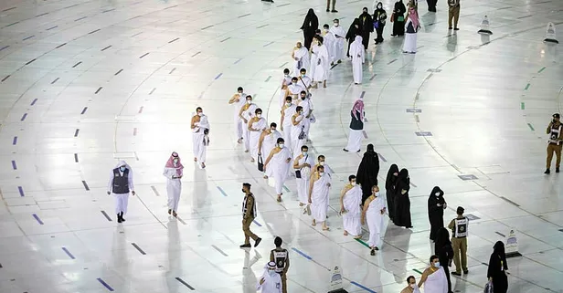 Hac ibadeti için kutsal topraklarda bulunan hacılar, kurban bayramının ilk gününde ifaza tavafı için gece yarısından sonra Mescid-i Haram'a gitti. Hacılar koronavirüs salgını nedeniyle sosyal mesafe kuralına uyarak ziyaret tavafını gerçekleştirdi.