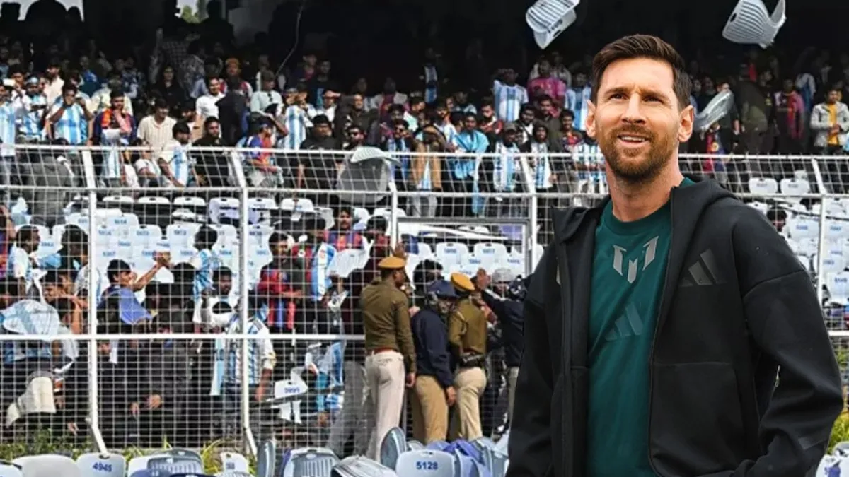 Hindistan’da dünyaca ünlü futbolcu Lionel Messi’yi görmek için saatlerce bekleyip 12 bin rupi ödeyen binlerce taraftar, Messi’nin sahada sadece kısa bir tur atıp güvenlik gerekçesiyle ayrılmasıyla öfkeden deliye döndü. Sahayı basan öfkeli taraftar etrafa saldırırken sandalyeler ve şişeler havada uçuştu.
