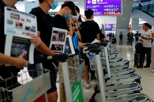 Göstericilerin check-in alanlarında yoğunlaşmasını takiben, Hong Kong Uluslararası Havalimanı yetkilileri, protestolara işaret ederek, "yolcu işlemlerinde kamusal toplantıdan dolayı ciddi oranda sorun yaşandığını" ve yerel saatle 16.30'dan itibaren tüm check-in işlemlerinin geçici durdurulduğunu bildirdi.