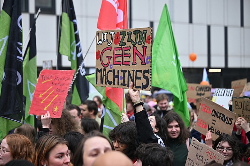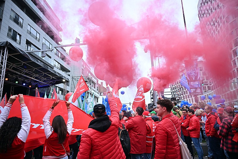 Belçika'daki işçi sendikalarının çağrısıyla kamu ve özel sektörden çalışanlar, federal hükümetin işsizlik ve emeklilik gibi sosyal harcamalarda planladığı kesintileri protesto etmek için bir günlüğüne iş bıraktı.