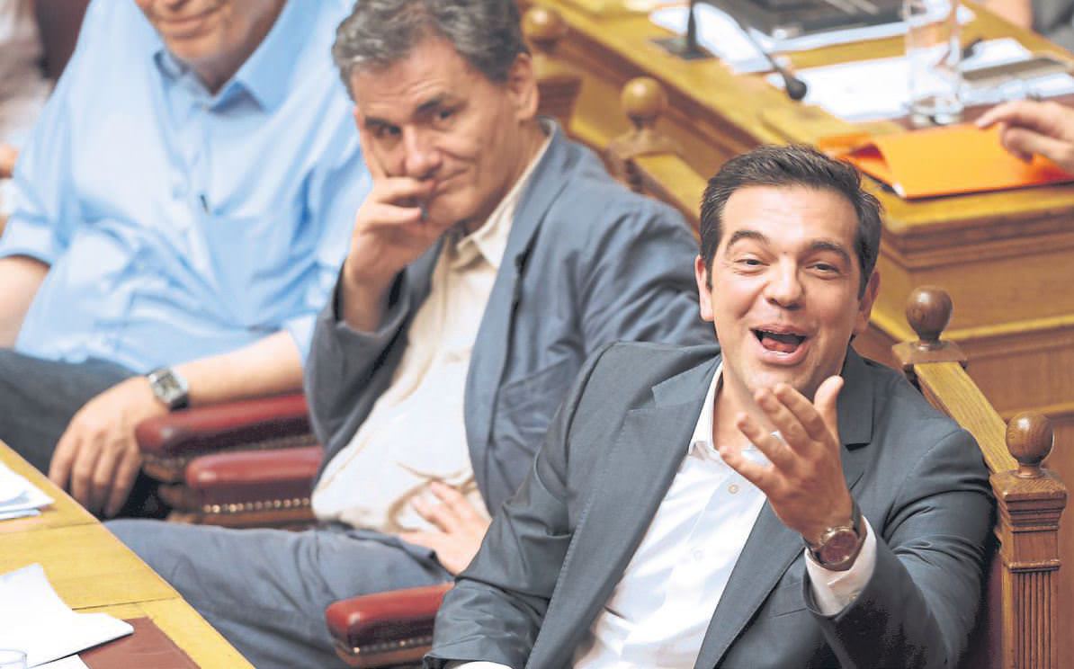 Yunan halkının onuruyla oynayan Başbakan Çipras, Avrupa Birliği'nin diktalarının oylandığı parlamentoda önce tedirgin pozlar verdi. Yunanistan'ın tapusunun AB'ye verildiği kesinleşince, Çipras kahkahalar attı