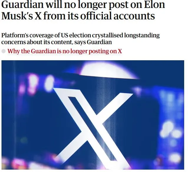 The Guardian, sosyal medyanın önemine dikkat çekerken X'in kitlelere ulaşma konusunda daha az etkin rol oynadığını belirtti ve "Gazeteciliğimiz, sitemizde tüm okuyuculara açık ve tercihimiz, insanların theguardian.com'a gelerek çalışmalarımızı burada desteklemesi." ifadelerini kullandı.
