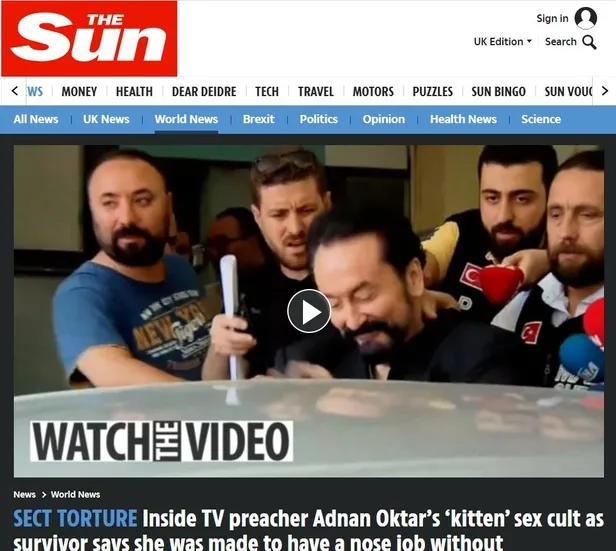 İngiliz basınının önde gelen yayın organlarından The Sun gazetesi, Adnan Oktar suç örgütünün iç yüzünü yazdı. "Adnan Oktar'ın acımasız seks tarikatı" şeklinde aktarılan haberde, bir dönem örgütte yer alan kişilerin ifadelerine yer verildi.