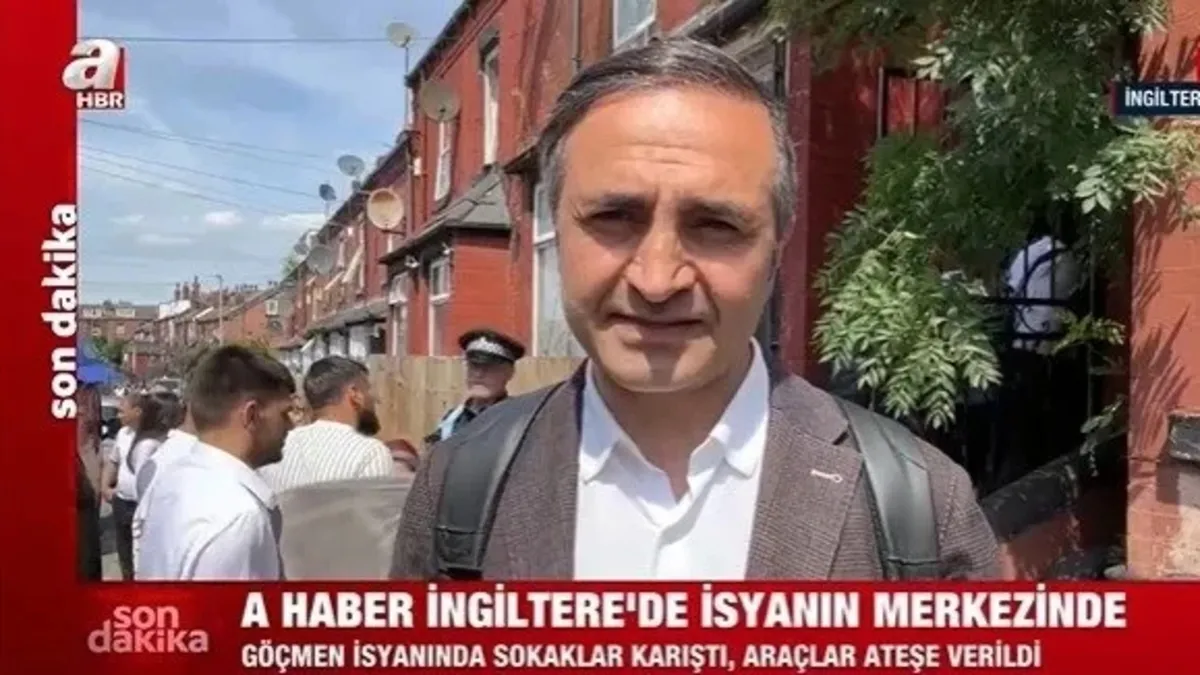"Leeds sokakları savaş alanına döndü. Çocukların gözaltına alındığı evin önündeyiz. 5 çocuk dün akşam bir evden koruma altına alınmaya çalışıldı. Polis araçları ters çevrilip yakıldı. Yolcu otobüsleri de yakıldı. Çok sayıda yetkili burada bulunuyor. Anne ve baba gözyaşları içinde getirildi. Yoğun güvenlik önlemleri alındı. Göçmenler kendilerine karşı bir ön yargı olduğunu söylüyor."