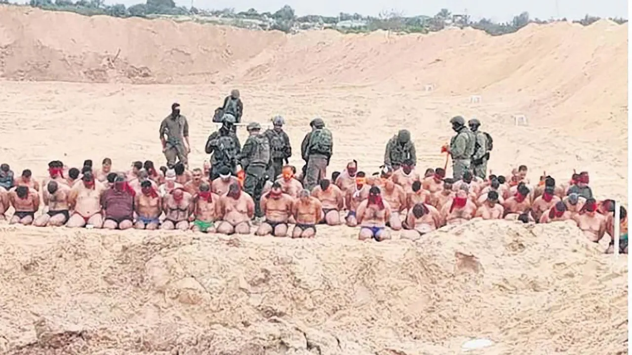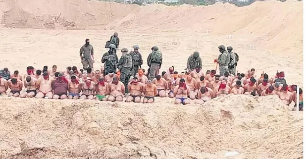 İsrail askerleri, Gazze'de esir aldıkları onlarca Filistinli'yi böyle teşhir etti. Bir de "Hava çok sıcak, gömleklerini çıkardılar" diye dalga geçti.