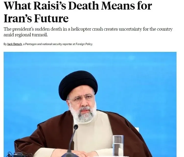 Foreign Policy, "Reisi'nin Ölümü İran'ın Geleceği Açısından Ne İfade Ediyor?" başlıklı haberinde Cumhurbaşkanı'nın helikopter kazasındaki ani ölümünün, bölgesel çalkantıların ortasındaki ülke için belirsizlik yarattığına yer verdi.