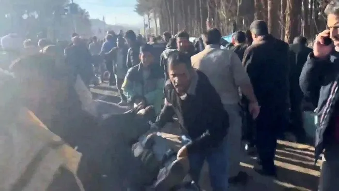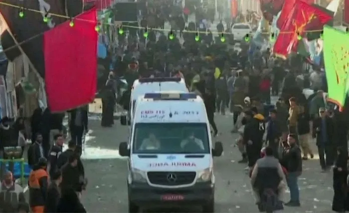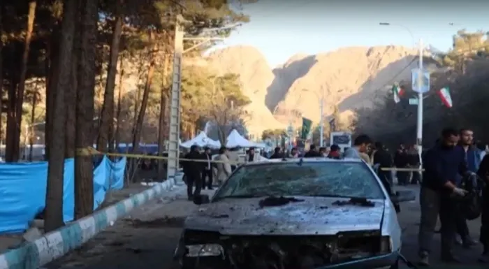 Kirman'da, Süleymani'nin kabrinin de bulunduğu mezarlığa giden yolda gerçeksen patlamanın kapsamı ilişkin detay verilmezken yayınlanan görüntülerde anma etkinliğine katılanların kaçıştığı ve ambulansların olay yerine gittiği görülüyor.