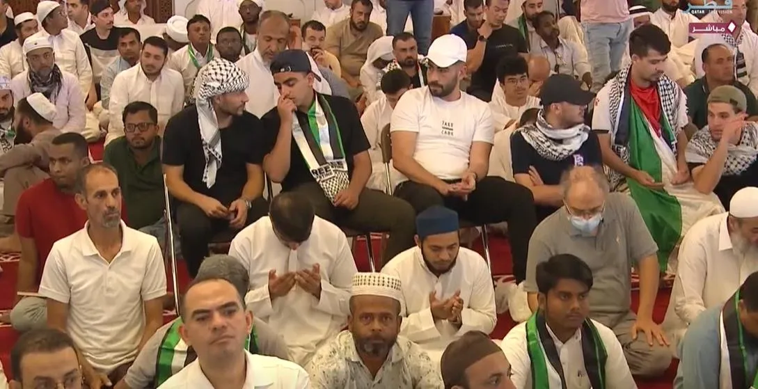 Hamas Siyasi Büro Başkanı İsmail Henniye için cenaze töreninin düzenleneceği Katar'ın başkenti Doha'daki İmam Abd al-Wahhab Camisi'ne gelen vatandaşlar, Filistin bayrakları ve Filistin'e özgü kefiyelerle törene katıldı.