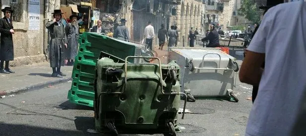 İsrail polis sözcülüğünden yapılan yazılı açıklamada, Kudüs'ün Ultra-Ortodoks mahallelerinden Mea Şearim'de yaşayan Yahudilerin yaktıkları çöp kutuları ile sokaklara barikat kurarak polise taş attıkları bildirildi.
