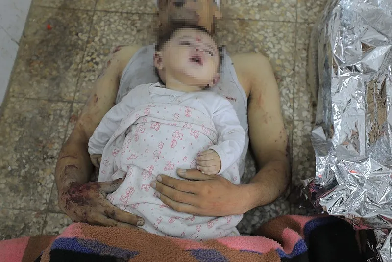 Şehit olan minik bir bebeğin naaşının yerde yatan babasının üzerine konulduğu görüldü. O anlar yürek burktu.