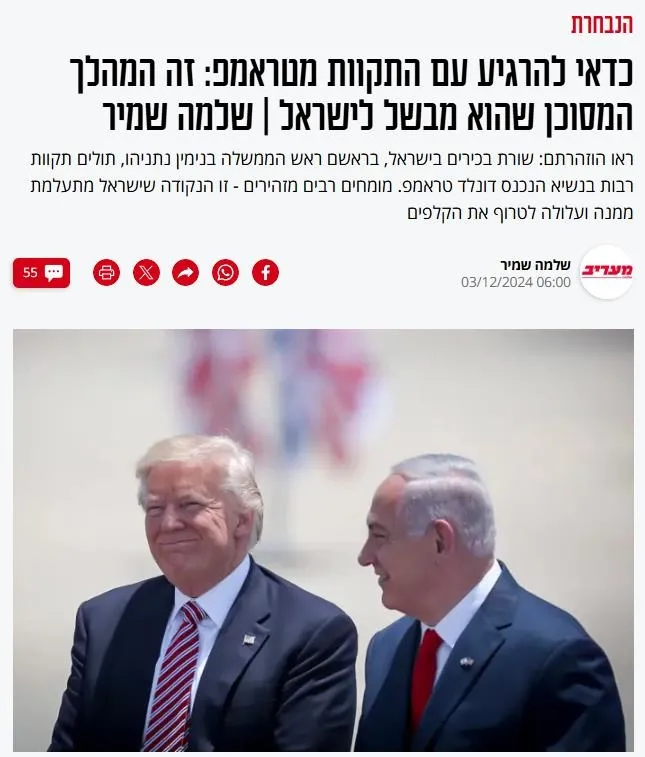 Maariv Netanyahu ekibini açıkça Trump yönetimine karşı uyarırken Haaretz'de ise dikkat çeken bir haber yayımlandı. Haaretz, Suriye'nin İsrail için büyük bir ikilem haline geldiğini belirtti.