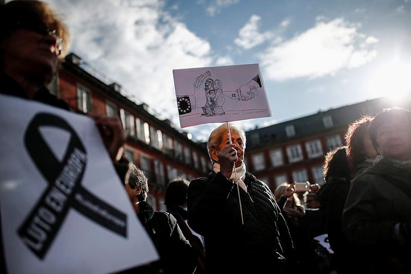 Ülkedeki bazı sivil toplum kuruluşlarının, 3 büyük işçi sendikasının ve sol görüşlü siyasi partilerin çağrısıyla Madrid'in ünlü Mayor Meydanı'nda sığınmacılar için insan zinciri eylemi yapıldı.