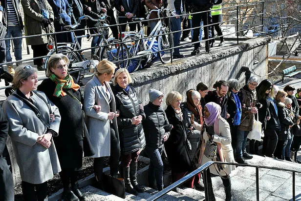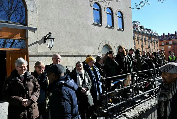 İsveç'in başkenti Stockholm'de halk Müslümanların huzur içinde cuma namazını kılması için Stockholm Camisi etrafında insan zinciri oluşturdu.