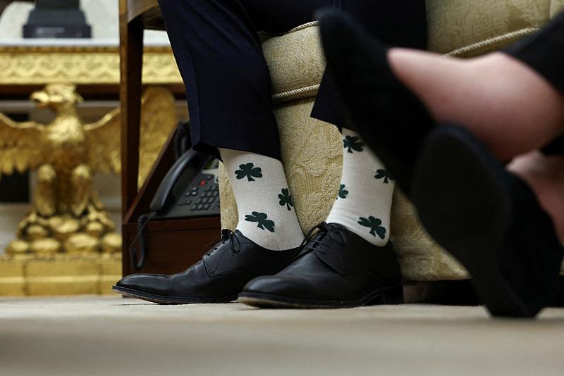 Sizin şerefinize, bu yoncaları giydim. Oval Ofis'te daha sonra buluştuğumuzda, Başkan Trump'ın muhafazakar giyimin çok büyük bir hayranı olduğunu söyleyeceğim, bu yüzden bu çorapları fark ederse Oval Ofis'te beni savunmak zorundasını. Bu, İrlanda-Amerika ilişkilerini sağlamlaştırmanın önemli bir parçasıdır ve bu çorapları giymesinin tek nedeni budur.