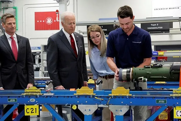 Biden, Amerikan silah şirketi Lockheed Martin'in Alabama eyaletinde bulunan Javelin tanksavar üretim tesisini ziyaret etti.