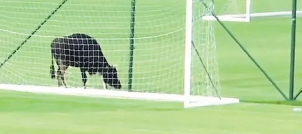 Sahaya kedi köper girmesi sıradan bir durum... Ancak Bulgaristan'da bu kez futbolcular inek şoku yaşadı. PFC Botev Plovdiv ile Cypriot AEL Limassol arasında oynanan hazırlık maçı ilginç anlara sahne oldu. Karşılaşma sırasında sahaya önce inek ardından köpek girdi. Futbolcuların şaşkın bakışları arasında saha içinde dolaşan inek bir ara kalecilik bile yaptı.
