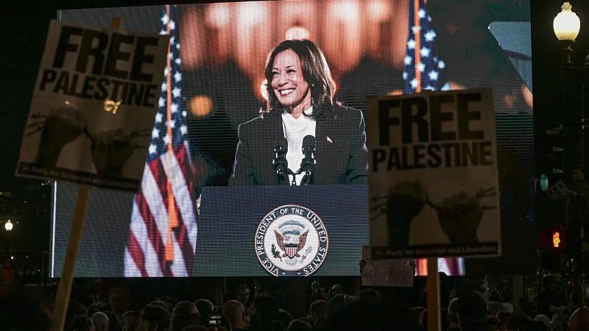 ABD'de 5 Kasım başkanlık seçimleri öncesi mitingler devam ederken Başkan Yardımcısı ve Demokratların başkan adayı Kamala Harris, İsrail'e verdiği destek dolayısıyla protesto edildi.