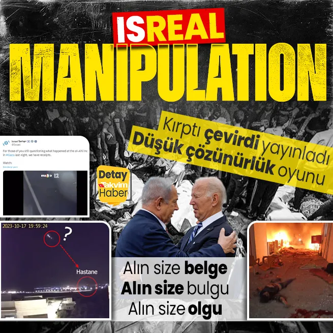 İsrail ise sistematik bir şekilde yürüttüğü soykırım sürecini algılarla perdelemek istiyor... Gazze'de bulunan El Ehli Baptist Hastanesi'ni vurup aynı anda 500 Filistinliyi şehit eden İsrail, uluslarası tepkiyi görünce kendini aklamak için dezenformasyona başvurdu. Mevcut görüntüleri manipüle edilecek şekilde kırpıp, ters çevirdi. Düşük çözünürlükte servis etti.