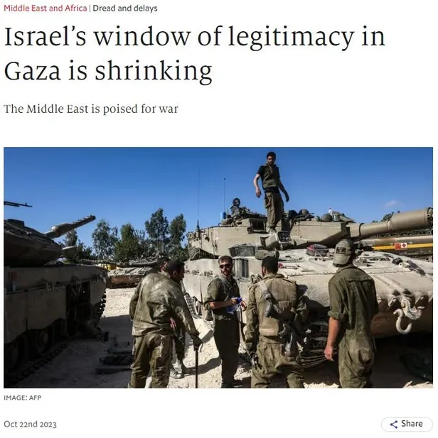 İngiliz the Economist gazetesi ise "İsrail'in meşruiyet penceresi daralıyor" başlıklı haberde İsrail'in savaşa hazır bir ülke olduğu belirtildi.