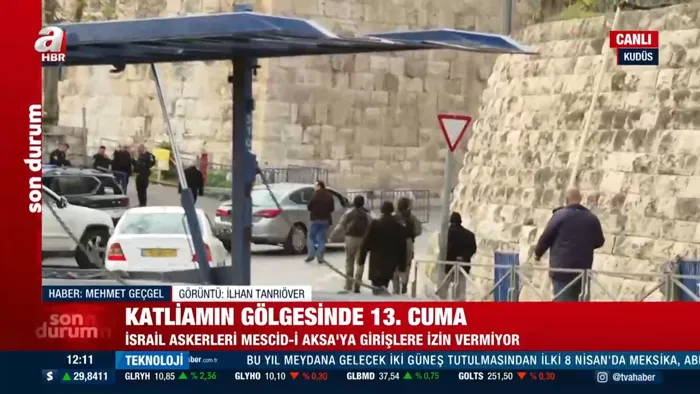 İsrail, işgal altındaki Doğu Kudüs'ün Eski Şehir bölgesinde bulunan Mescid-i Aksa'da cuma namazı kılmak isteyen Filistinlilere yönelik geniş kısıtlamalarını 13. haftada da sürdürüyor.