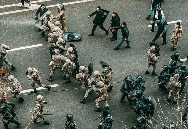 Ülkede olayların kontrolden çıkmasının ardından Devlet Başkanı Comert Kasım Tokayev, KGAÖ üyelerinden asker yardımı istemişti. Rusya, Belarus, Kırgızistan, Ermenistan ve Tacikistan askerleri talep üzerine Kazakistan'a giderek devlet binalarının güvenliğini üstlenmişti.