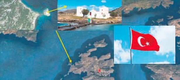 Muğla'nın Datça ilçesinin karşısındaki turistik Yunan Adası Sömbeki (Simi) yakınlarında küçük bir adacığa iddiaya göre Türk bayrağı dikildi.