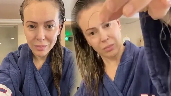 Duştan yeni çıkmış olan Milano, elindeki mavi fırçayla ıslak saçlarını taramaya başladı. Sonra da "Bir fırçalamayla kaybettiğim saçlarım" diyerek fırçanın tellerine dolanan saçlarını gösterdi. Ünlü oyuncu takipçilerini maske takmaları konusunda uyardı.