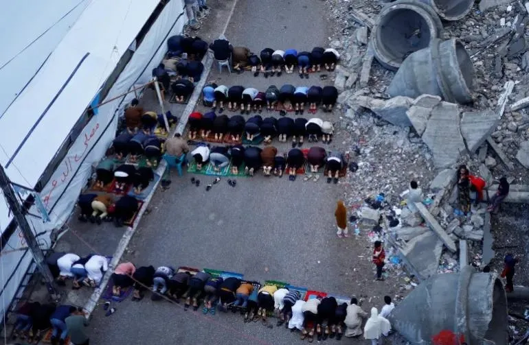 Terör devleti İsrail'in işgali altındaki Doğu Kudüs'ün Eski Şehir bölgesinde bulunan Mescid-i Aksa'da on binlerce Müslüman Ramazan Bayramı'nı eda etmek için bir araya geldi. Mekke ve Medine'de de müslümanlar kılınan namaz ile bayramı karşıladı. Aylardır İsrail soykırımı altında yaşayan Filistinliler, Gazze'nin güneyindeki Refah'ta, soykırım ordusunun yıktığı Refah Camisi'nde bayram namazını kıldı.