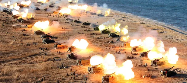 Kuzey Kore resmi haber ajansı KCNA'nın yayınladığı orduya ait fotoğraf dünyaya servis edildi. Fotoğrafta Kuzey Kore ordusundan topçu birliklerinin ateş etme anı gösteriliyor.