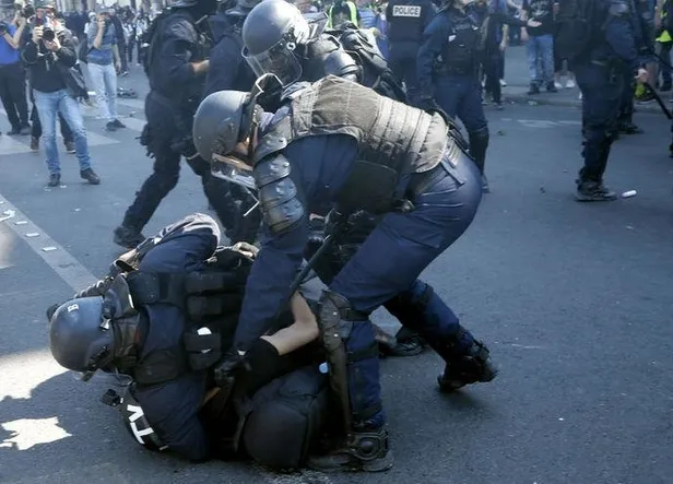 Polis, Champs-Elysees Caddesi'nde gösteri yapması yasaklanan eylemcilerin Charles de Gaulle Etoile Meydanı'nı çevreleyen sokaklarla Elysee Sarayı ve Ulusal Meclis civarından uzak tutulması için yoğun güvenlik önlemleri aldı. Pazartesi günü çıkan yangında büyük zarar gören Notre Dame Katedrali ve çevresinde de eylem yapılmasına izin verilmedi. Toulouse'da da gerginlik yaşanan eylemde polis göstericilere biber gazı sıktı.