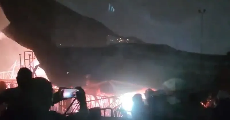 Sosyal medyaya yansıyan görüntülerde, şiddetli rüzgara dayanamayan dev metal ekranın mitingi takip edenlerin üzerine düştüğü görülüyor. Dev metal ekranın düşmesinin ardından sahnenin çatısının da çöktüğü ve orada bekleyenlerin "büyük" panik yaşadığı kameralara yansıdı.