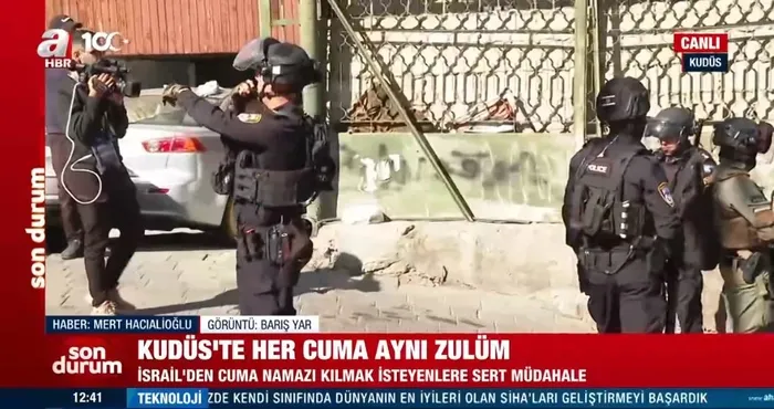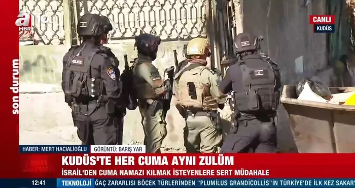 Gazze soykırımına başladığı 7 Ekim tarihinden bu yana Doğu Kudüs'te bulunan Mescid i Aksa'da cuma namazı kılmak isteyen Filistinlilere engel olan işgal güçleri bir kez daha benzer müdahalelere imza attı.