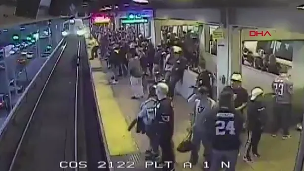 ABD’nin Kaliforniya eyaletinde trenin istasyona yanaştığı sırada raylara düşen adam, istasyon görevlisi tarafından son anda kurtarıldı. Olay saniye saniye güvenlik kamerasınca kaydedildi.