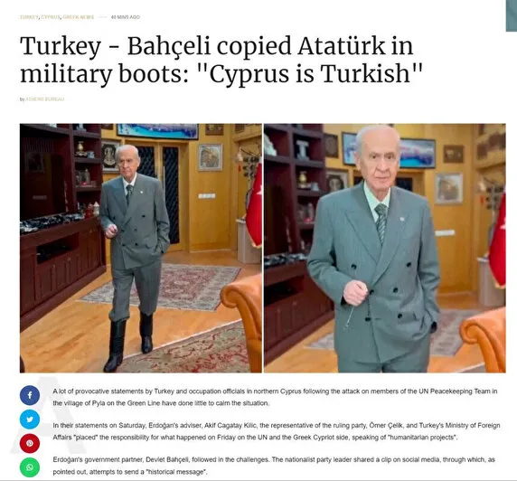 MHP Lideri Devlet Bahçeli'nin çizmeli KKTC paylaşımı Yunan basınında gündem!