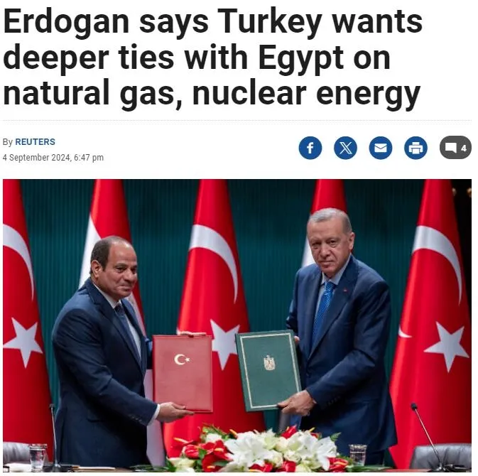 İsrail gazetesi The Times of Israel ise "Erdoğan, Türkiye'nin doğal gaz ve nükleer enerji konusunda Mısır ile daha derin bağlar istediğini söyledi" başlığını kullandı ve iki ülkenin ticaret, savunma, sağlık, enerji ve çevre konuları dahil her alanda ilişkileri iyileştirmeye yönelik adım attığını belirtti.