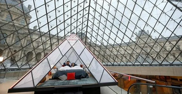400 bin kişiye konaklama hizmeti sunan Airbnb, 1 kişiye Louvre'de 1 gece konaklama vaad etti.
