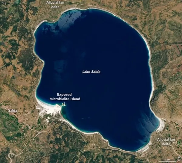 Eşsiz güzelliğiyle yerli ve yabancı turistlerin gözdesi olan Salda Gölü ile ilgili NASA Earth hesabından çok konuşulacak bir paylaşım geldi. ABD Havacılık ve Uzay Ajansı, Burdur'da bulunan Salda Gölü ile Mars'ta yer alan Jezero Krateri arasında coğrafi benzerlikler olduğunu açıkladı.