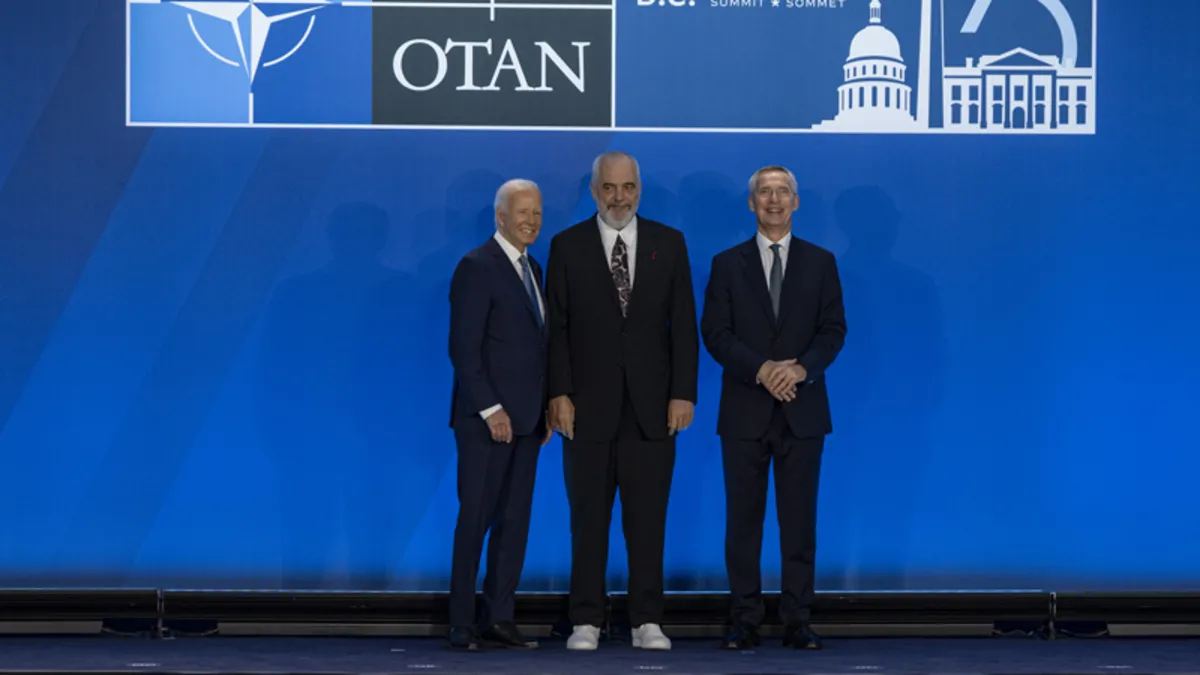Dünyanın takip ettiği ABD’deki NATO Liderler Zirvesi’nin ilk oturumu öncesinde gerçekleştirilen aile fotoğrafı çekimlerine Arnavutluk Başbakanı Edi Rama’nın ayakkabıları damga vurdu. Tüm liderler klasik bir seçim yaparken Edi Rama’nın beyaz bir spor ayakkabısı giymesi gündem oldu.