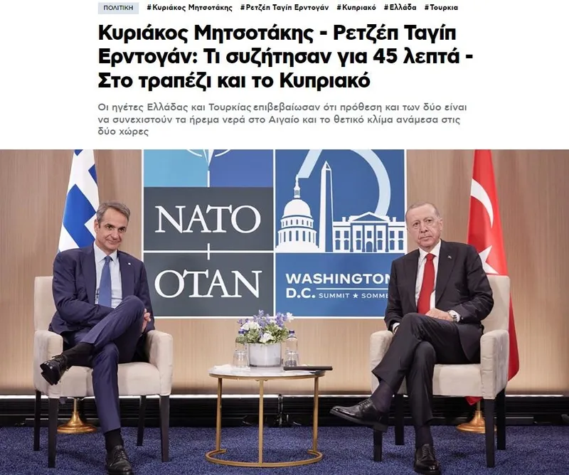 Yunan gazetesi Protothema Başkan Erdoğan ve Miçotakis'in NATO Zirvesi oturum aralarında yaptığı görüşmenin yaklaşık 45 dakika sürdüğünü belirtti ve iki ülke arasındaki olumlu havanın bir kez daha teyit edildiğine dikkat çekti.