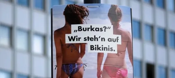 Almanya'da göçmen karşıtı AfD partisi Berlin'in en merkezi caddesinde "Burka mı? Biz bikini seviyoruz" yazan afişlerle donattı.