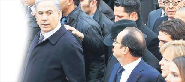 Fransa son 1 haftada teröre 17 kurban verdi. İslam düşmanları, saldırıyı bahane edip Müslüman alemini hedef seçti. Ancak Fransa'nın başkenti Paris İslamofobi lobisine tokadı indirdi. Fransa Cumhurbaşkanı François Hollande, teröre karşı tüm liderleri Paris'e davet etti. Aralarında Başbakan Ahmet Davutoğlu'nun da bulunduğu 50 ülkeden devlet adamı, Pazar günü Paris'e gitti. Kol kola girip 1.5 milyon kişiyle teröre karşı yürüdü. Ancak burada istenmeyen bir isim vardı. O da İsrail Başbakanı Benyamin Netanyahu'ydu. Buna göre Hollande, Charlie Hebdo saldırılarının ardından düzenlenen birlik yürüyüşüne Benyamin Netanyahu'yu davet etmedi.